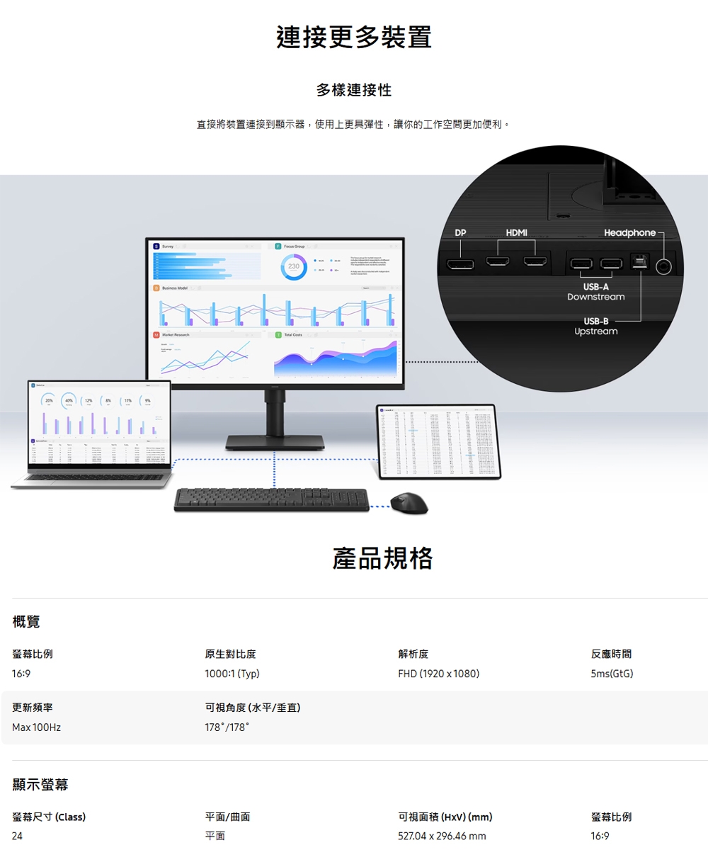 | 訊號輸入介面 | HDMI, DisplayPort(DP), USB |
