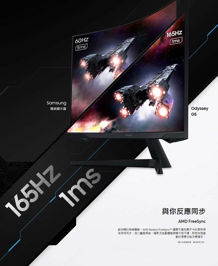 三星 S27CG552EC 27吋曲面 VA 面板 QHD+ 電腦螢幕 HDMI DP 輸入 1ms 反應時間 抗藍光護眼顯示器