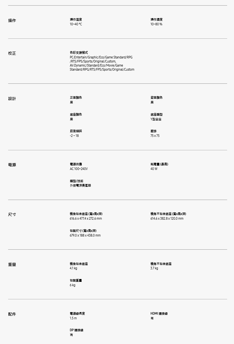 | 螢幕尺寸 | 27吋LCD電腦螢幕 |