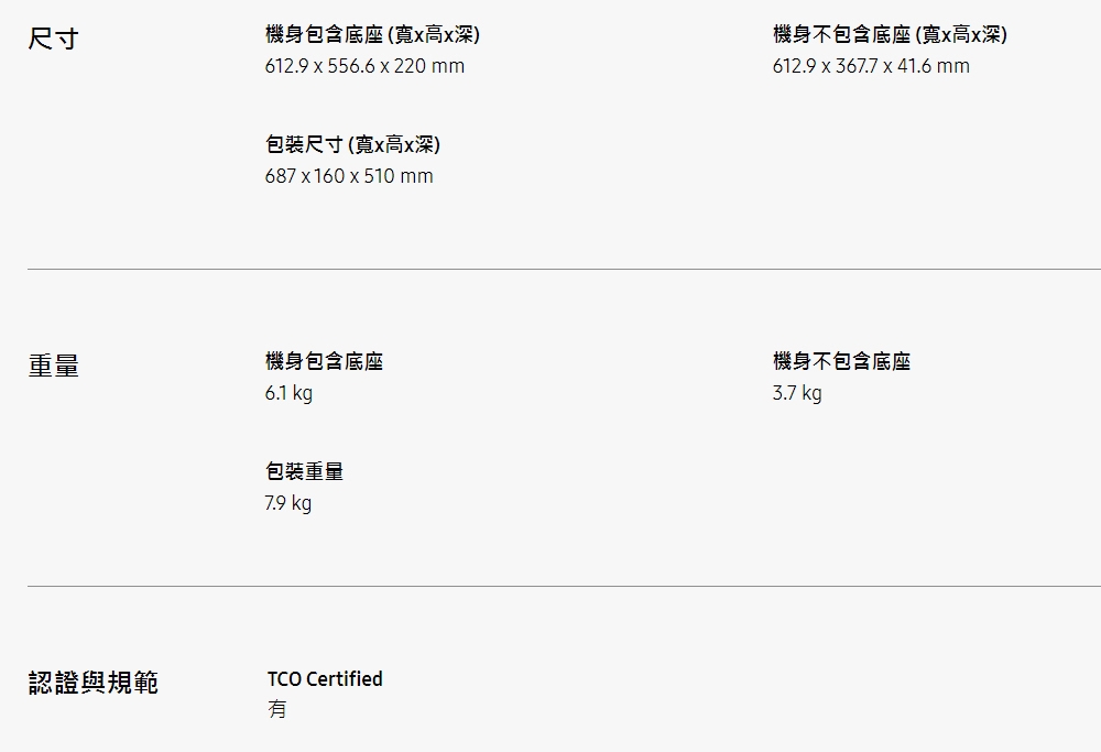 | 外觀尺寸(寬x高x厚)(mm) | 612.9 x 556.6 x 220 |