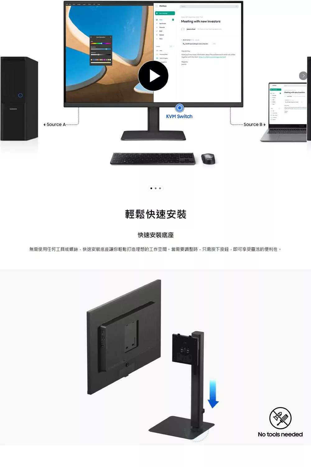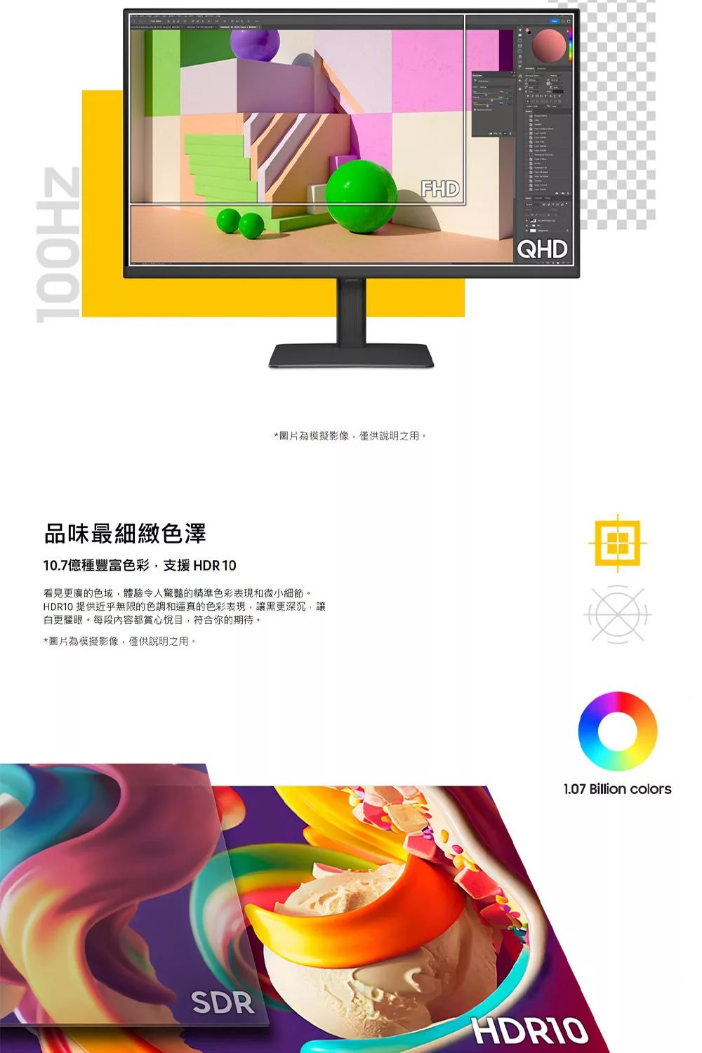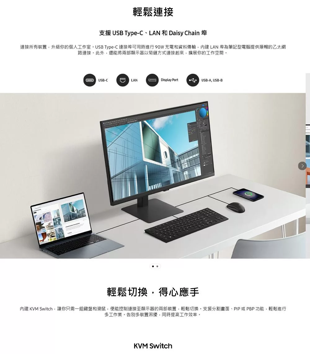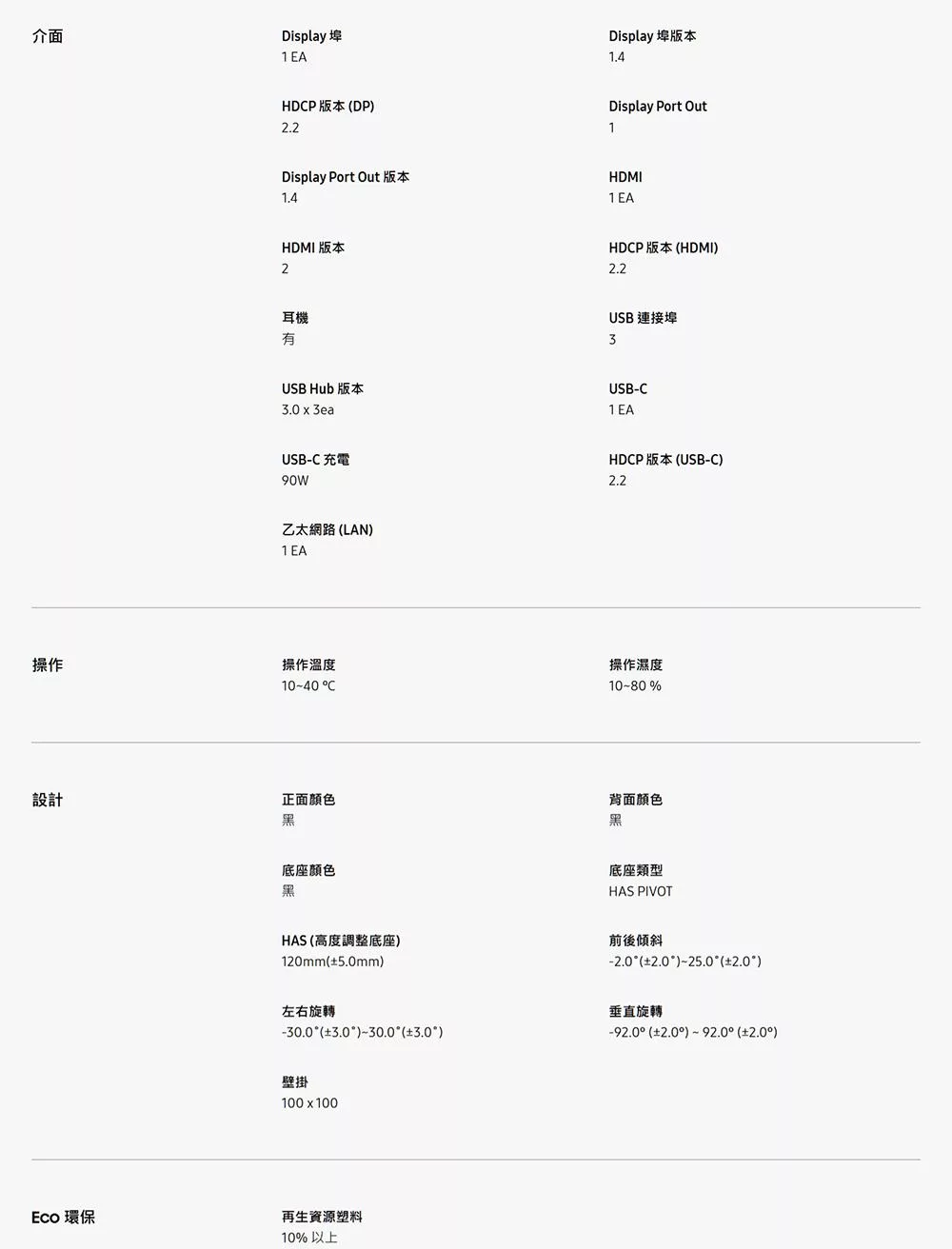 | 包裝內容 | 32吋 ViewFinity S6 QHD 高解析度平面顯示器 S32D606UAC<br/>電源線<br/>HDMI 連接線<br/>USB Type-C 連接線 |