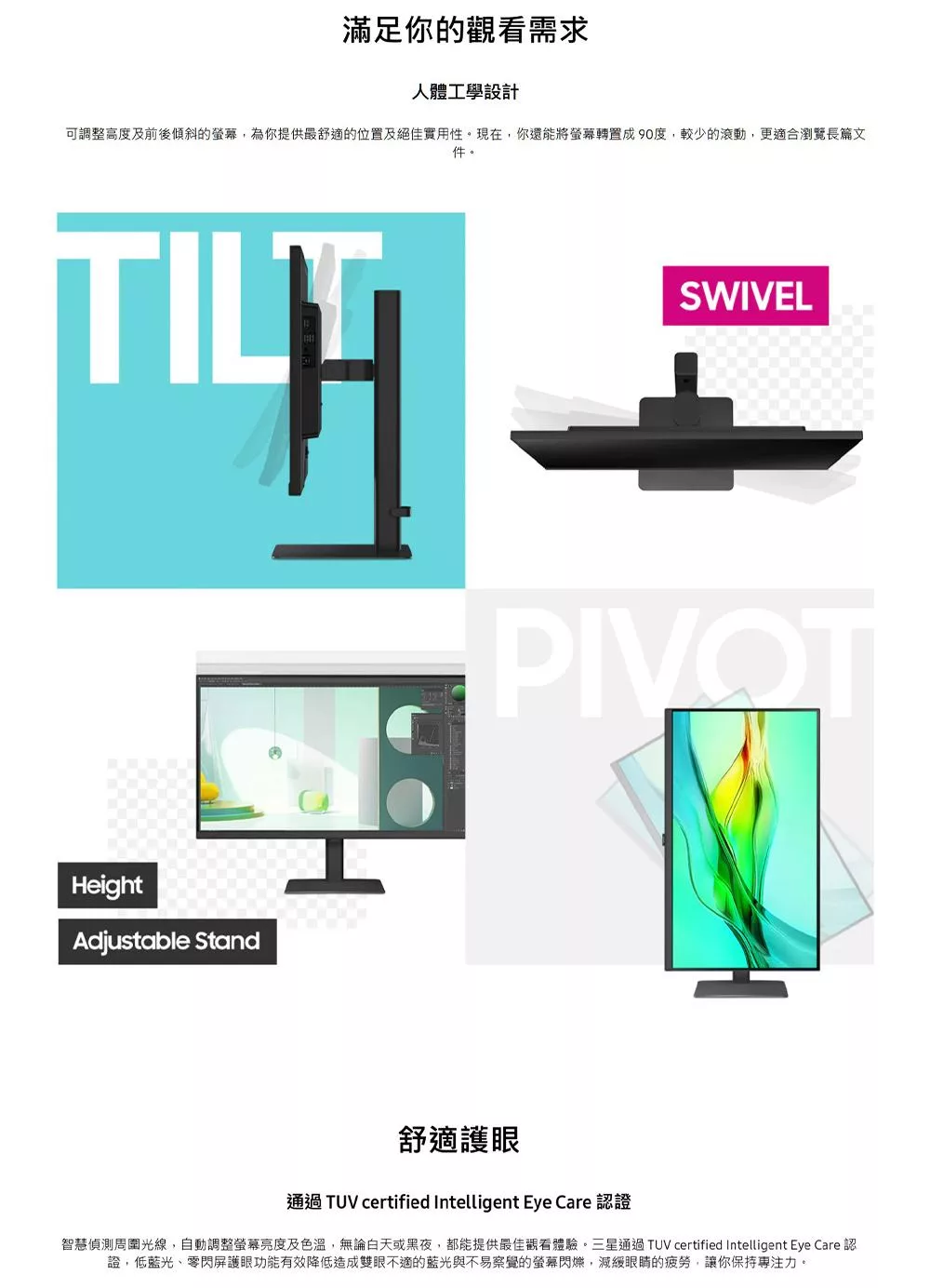 | 特殊功能 | 薄邊框,抗藍光,零閃屏,可旋轉螢幕 |