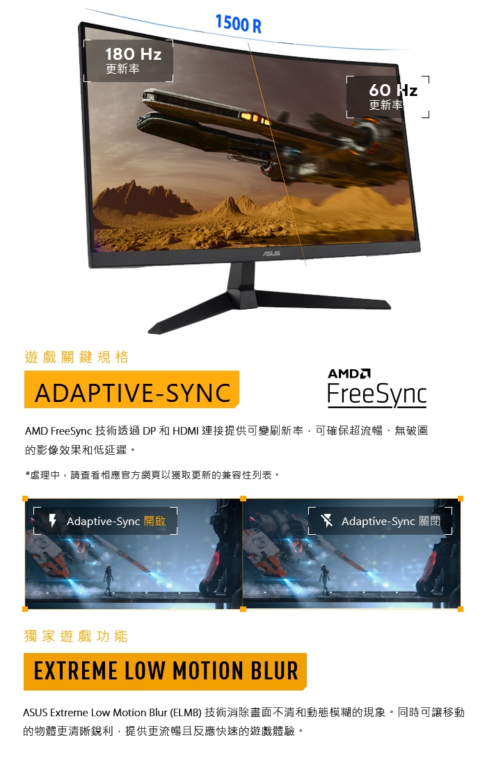 | 特殊功能 | 曲面,薄邊框,電競,抗藍光,零閃屏,廣視角,有耳機插槽,護眼不閃屏,可壁掛式,內建喇叭 |