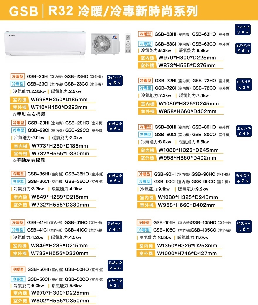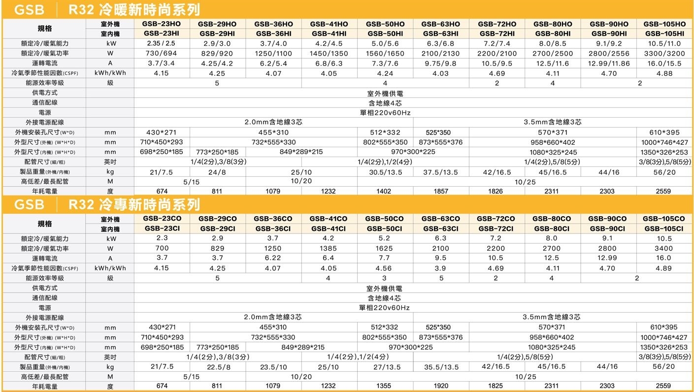 | 型號 | 室內機:GSB-105CI、室外機:GSB-105CO |