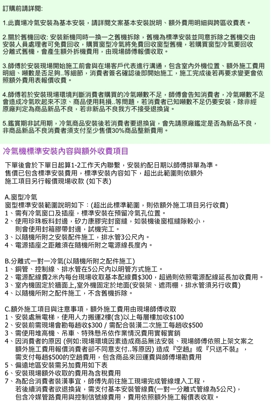 | 冷氣類型 | 分離式單冷變頻 |