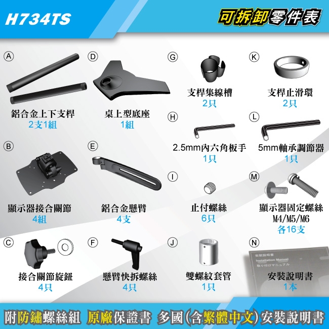 | 螢幕螺絲 | M4 / M5 / M6 (產品內附) |