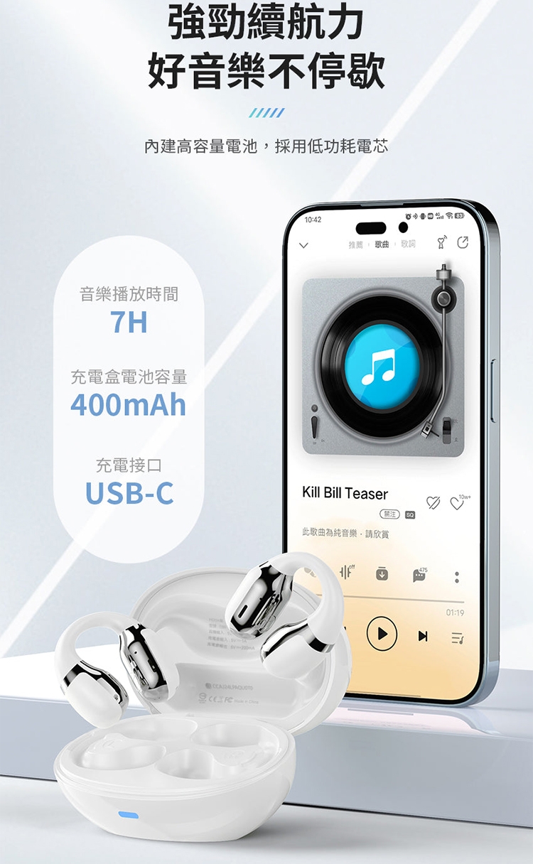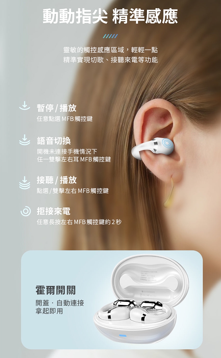 HODA OWS 骨傳導藍芽耳機 運動防水一般使用 白色藍芽5.0 TYPE-C充電 Android iOS通用一年保固