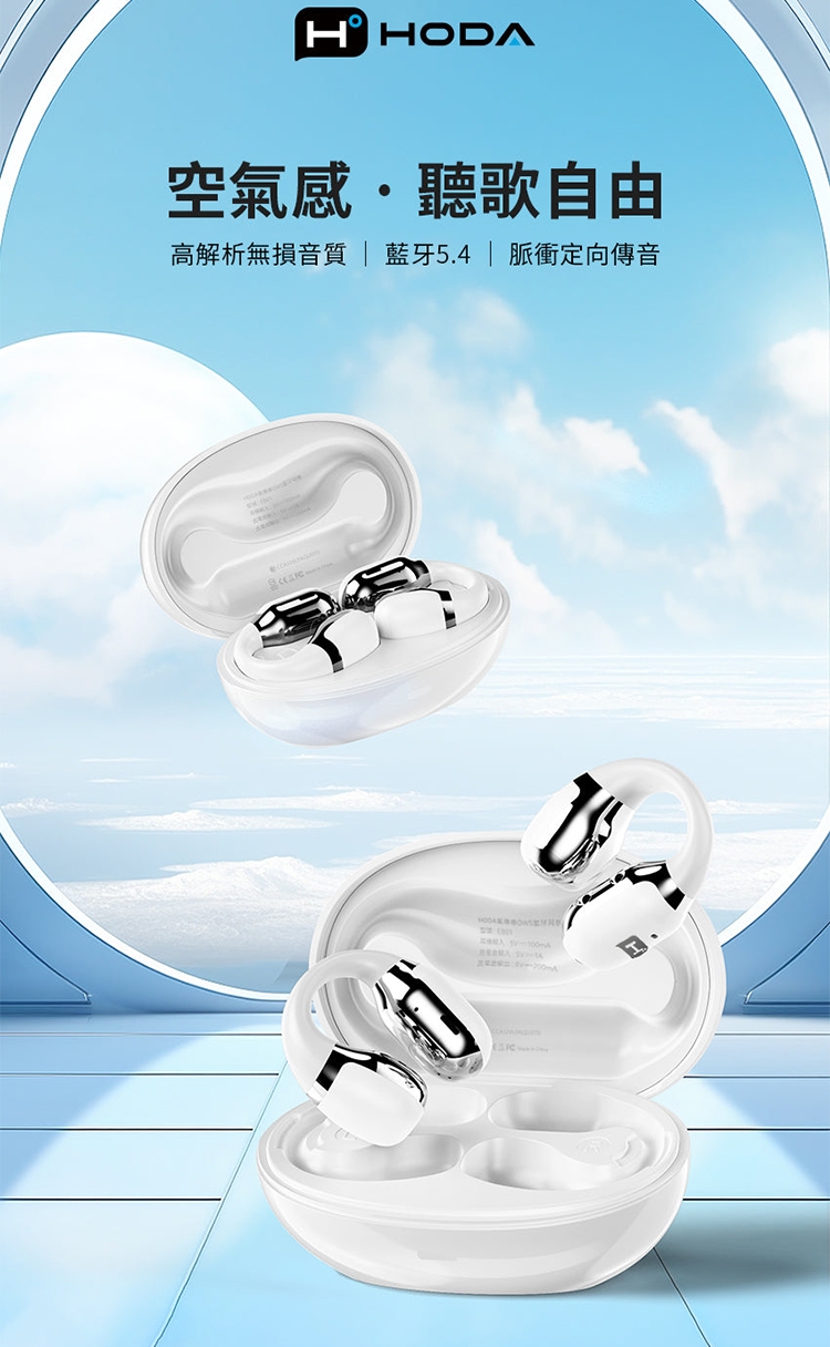 HODA OWS 骨傳導式藍芽耳機,適合運動與日常使用,搭載藍芽5.0傳輸,提供穩定連線與高音質體驗。白色素面設計,輕巧僅600g,內建麥克風支援通話,TYPE-C充電埠相容Android與iOS系統。中國製造,一年保固,NCC認證CCAJ24LPAQU0T0,BSMI R3G976,舒適不入耳,解放雙耳安全運動。