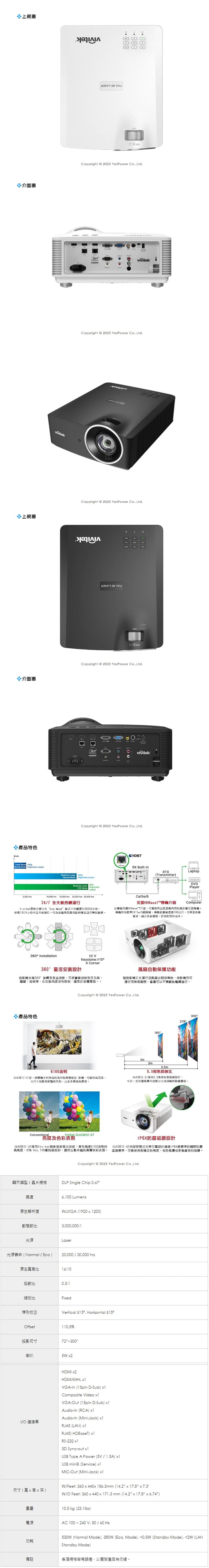 | 投影亮度(lm) | 6100 ANSI Lumens |