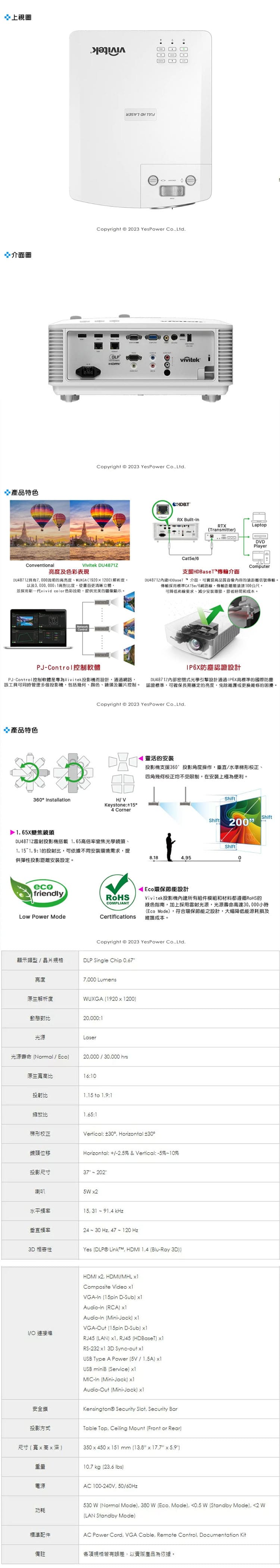 | 支援解析度 | VGA, SVGA, XGA, SXGA, SXGA+, UXGA, WUXGA@60hz, M |
