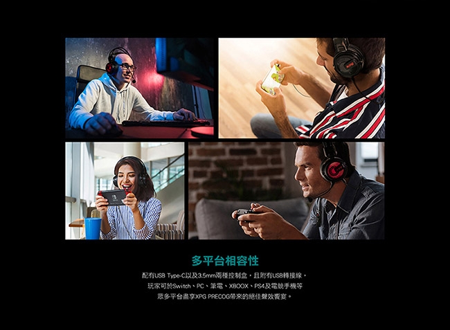 XPG PRECOG 頭戴式電競遊戲耳機 有線USB/Type-C/3.5mm 黑色362g 7.1音效卡 兩年保固