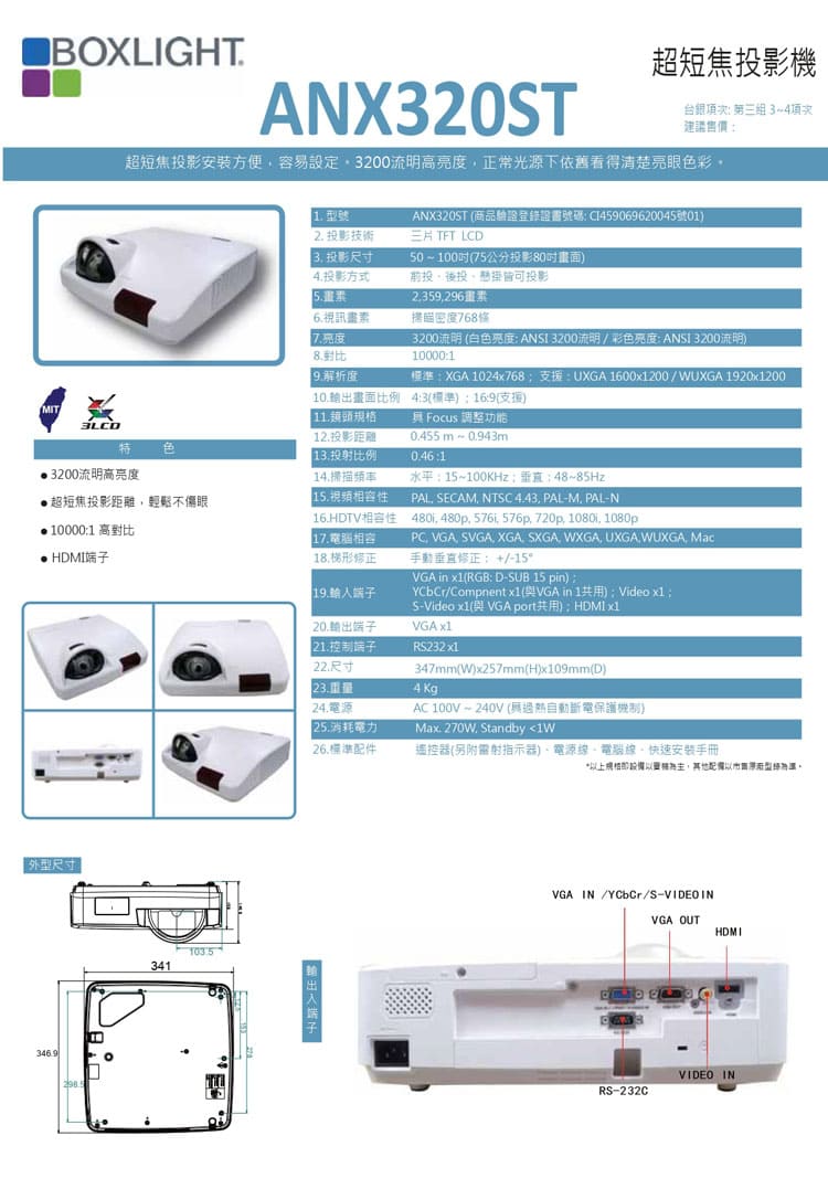 | 支援解析度 | 標準:XGA (1024x768) / 支援:UXGA (1600x1200); WUXGA ( |